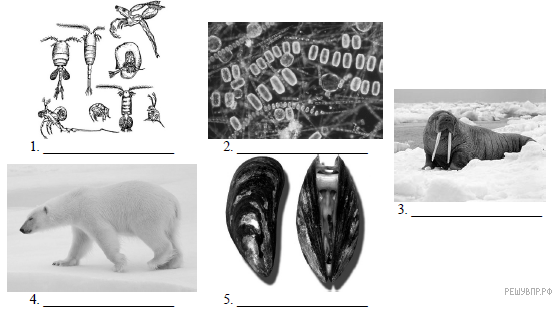 В экосистеме северных морей и прибрежной территории живёт и взаимодействует множество растений, животных и микроорганизмов. Рассмотрите группу, в которую входят зоопланктон, фитопланктон, морж, мидии, белый медведь.
