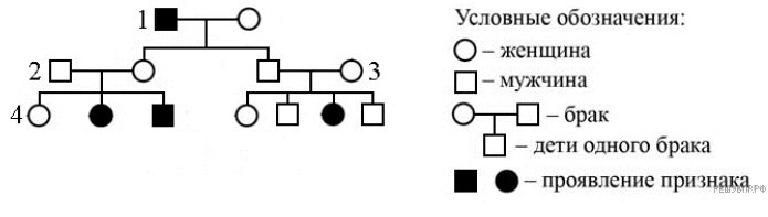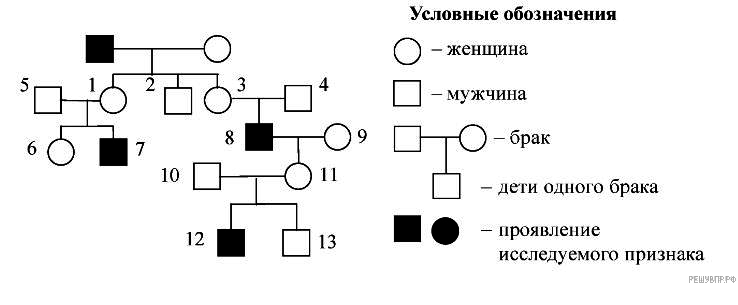 В медицинской генетике широко используется генеалогический метод. Он основан на составлении родословной человека и изучении наследования того или иного признака. В подобных исследованиях используются определённые обозначения. Изучите фрагмент родословного древа одной семьи, у некоторых членов которой имеется глухонемота.